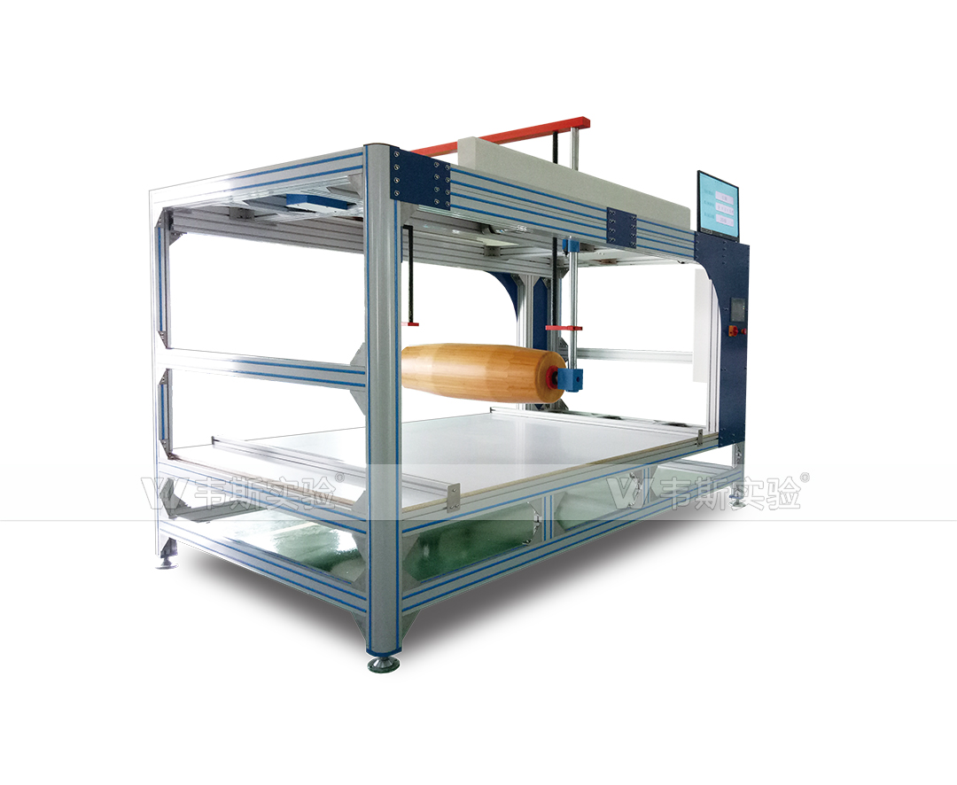 采用一個滾動式加載模塊水平放置在床墊規(guī)定的加載部位,以一定頻率滾動,對床墊進行往復(fù)加載,以檢驗床墊對長期重復(fù)性滾動載荷的承受能力。